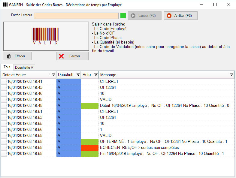 Le module Ganesh Code-barres : Fonction saisie des temps