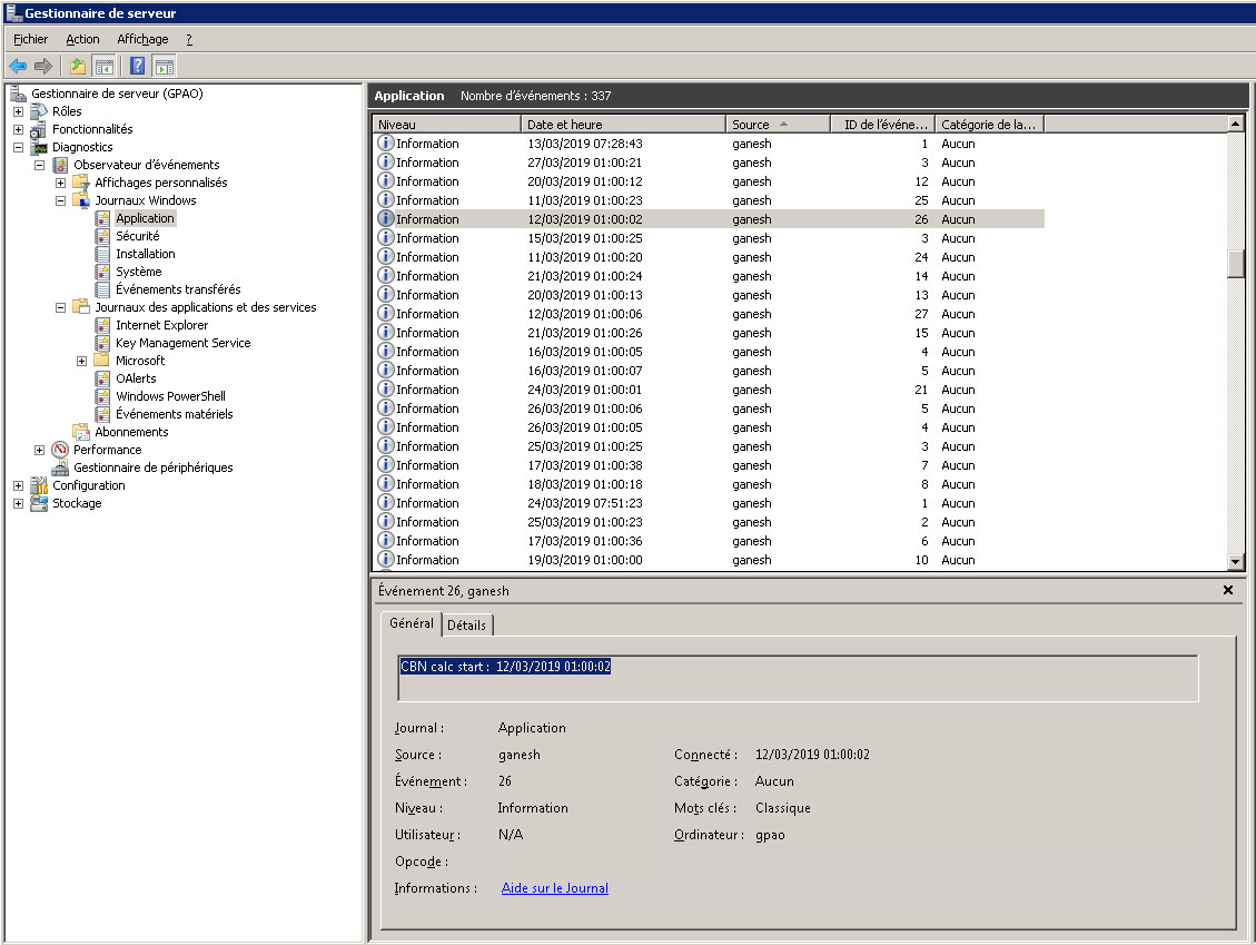 Suivi des logs du service Ganesh CBN